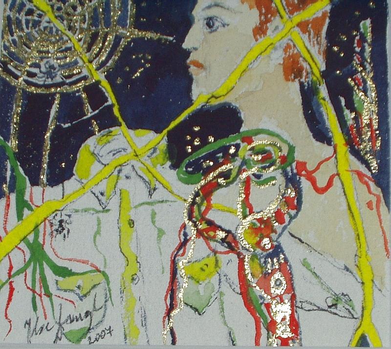 "versponnen im Netz" Aquarell+Gold 10x10